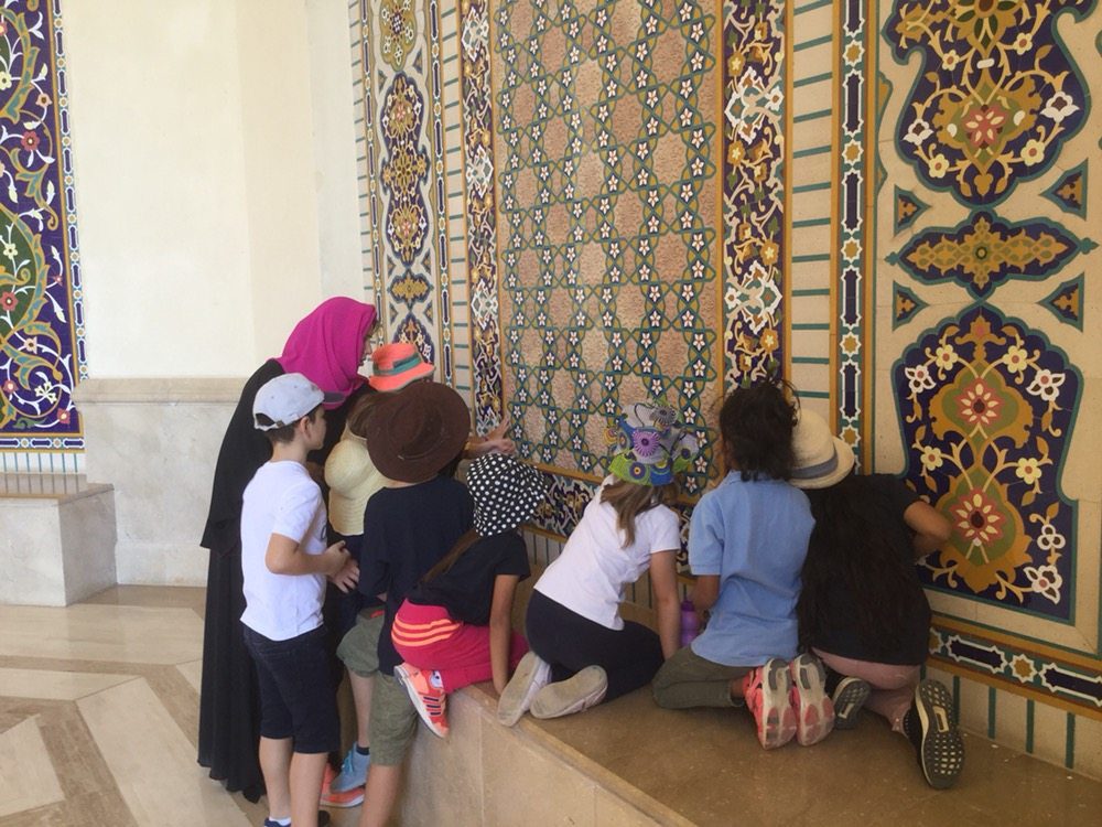 Many parts of the mosque were enormous and we tried to estimate how many metres long or high certain parts were. Here we are counting our strides to measure the length of the men’s prayer hall.