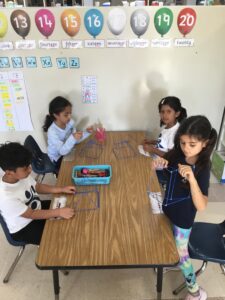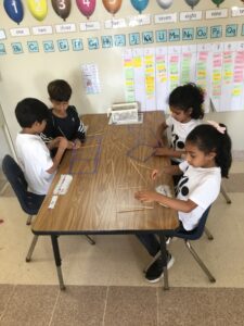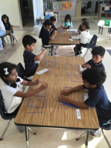 Recently we have been exploring geometry, looking at a range of two-dimensional (2D) and three-dimensional (3D) shapes. We have been busy learning that 2D shapes exist on flat surfaces like paper, while 3D shapes can be observed from different angles as they have a body that takes up space. Using our research skills we have noticed that shapes are all around us, and we documented a range of shapes in our environment. We constructed many shapes, designed and built 3D structures and went on a shape hunt around the school.
