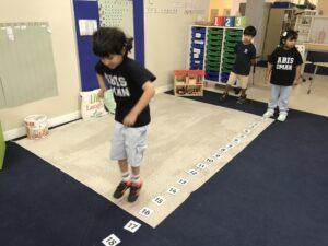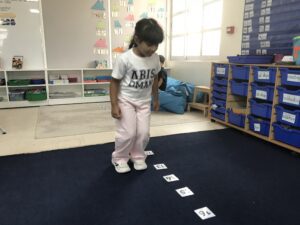 This week, our students continued developing their understanding of numbers up to 20. Many of them are now able to count independently, and we took the next step by practicing skip counting in groups of 2. I wanted to share some photos from this engaging activity, where the children arranged the numbers 1 to 20 in order and physically jumped over every second number. It was a hands-on and fun way to reinforce their numerical skills.Please continue practicing counting to 20 and back at home with your child. You can also ask them to identify the number that comes before and after a given number to strengthen their understanding.
