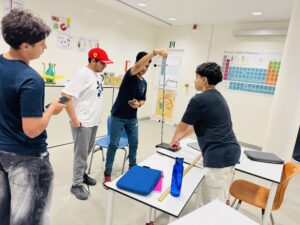 Grade 10 science students are currently working on their Criteria BC summative assessment by investigating the principles of oscillation through a pendulum experiment. They measured the time taken for complete oscillations while varying the pendulum’s length and mass of the bob, collecting raw data with precision using stopwatches and measuring tapes. As they compile their findings into a scientific lab report, they will analyze how these variables influence the pendulum’s time period and frequency, enhancing their understanding of oscillatory motion and developing critical thinking skills.