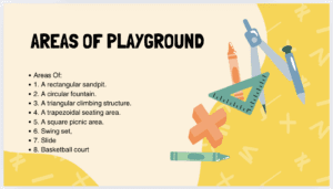 Grade 7 students proved their understanding of geometry this week by designing playgrounds that applied concepts like area, perimeter, and circumference to shapes like rectangles, squares, triangles, circles, and trapezoids. Some designed actual 3D models using materials like cardboard and clay, while others made interactive digital presentations using diagrams, calculations, and animations. All the plans included detailed descriptions of dimensions and mathematical justification for their designso that the playground would meet the needs of the people in terms of safety, accessibility, and functionality. From circular sandboxes to trapezium picnic areas and triangular climbing areas, the students demonstrated creativity, problem-solving, and applied mathematics to everyday life. Their projects illustrated how geometry can delimit spaces while encouraging critical thinking and collaboration.