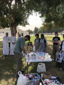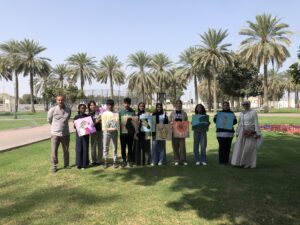 On Wednesday, February 26, selected students from Grades 7, 8, and 9 took part in the Art Garden workshop at Sohar Public Park, organized by the General Directorate of Culture, Sports, and Youth. This engaging outdoor experience provided students with the opportunity to connect with peers from other schools while experimenting with stencil techniques on canvas to create their own unique artworks.