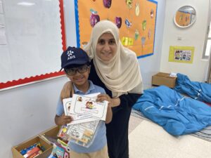 تكريم المشاركين بمسابقة تحدي القراءة by Amal NASER | Apr 24, 2025 | Arabic, Grade 1 | 0 comments بحمد الله ومنته تم اليوم تعزيز طلاب الصف الأول الابتدائي بهدايا بسيطة لمشاركتهم الفعالة في مسابقة تحدي القراءة حيث قرأ طلاب الصف الأول عددا كبيرا من القصص الخارجية التي عززت من مستوى قراءتهم وأثرت لغتهم بوركت جهودهم الطيبة