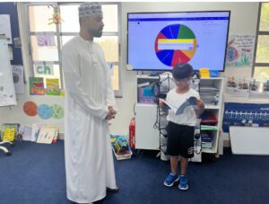 طلاب الصف الاول في هذا الاسبوع اختاروا معلم من معالم بلادهم وتحدثوا عنها امام زملائهم