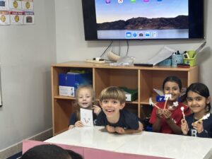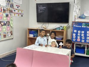 This week, the children practiced storytelling using puppets, bringing their characters to life with creativity and enthusiasm. They reflected on what worked well in their performances, such as using clear voices and expressive actions, and showed courage by sharing their stories in front of their classmates. It was wonderful to see them becoming more confident and thoughtful as storytellers. We also visited the book fair, where the children were excited to explore and choose new books to take home and enjoy!