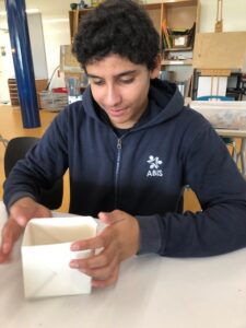 In our MYP Grade 8 Design class, students are tackling an exciting real-world challenge: designing and building a water tank that uses minimal materials to hold 200 mL of water for three minutes. Acting as trainee engineers, they must plan, sketch, build, and test their prototypes using only newspaper, popsicle sticks, and masking tape—with a strict mass limit of 18 grams. The focus of the unit is on efficient development, pushing students to think critically about structure, resource use, and testing strategies. Many students have already moved into the testing phase, collecting data to refine their designs and improve performance. This project not only strengthens their design thinking but also encourages creativity within limitations. Success is measured by how efficiently the tank holds water, with higher scores going to lighter yet stronger structures. Through this hands-on experience, students are learning the value of planning, problem-solving, and thoughtful improvement.