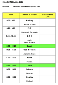 The first day back after the Eid al Adhaa holiday the G6 students will have the whole day to meet with teachers and experience life in the Secondary school. This will be a very exciting day where they will start to visualise their next step. It will also be a great chance to have all their questions, queries and wonderings answered.