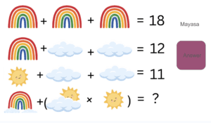 Mathematics – we completed our units on patterns & sequences, revisited our pre-assessments to reflect on our growth and extended ourselves by designing algebraic math challenges of our own. These problems not only connect to algebra (by using an image to represent a value) but also the operations order and using B.O.D.M.A.S to determine which part of a problem to solve first. There is an example below, this is a link to some other problems the children have created – link – how many can you solve?