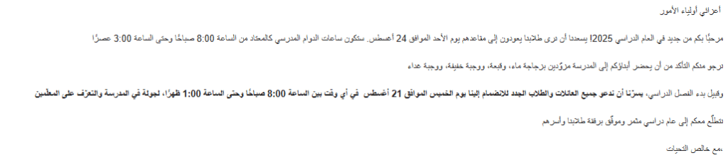 Welcome back to the 2025 academic year! We are excited to see our students return on Sunday, 24 August. The school day will run as usual from 8:00 am to 3:00 pm. Please ensure your child comes prepared with a water bottle, hat, snack, and lunch.