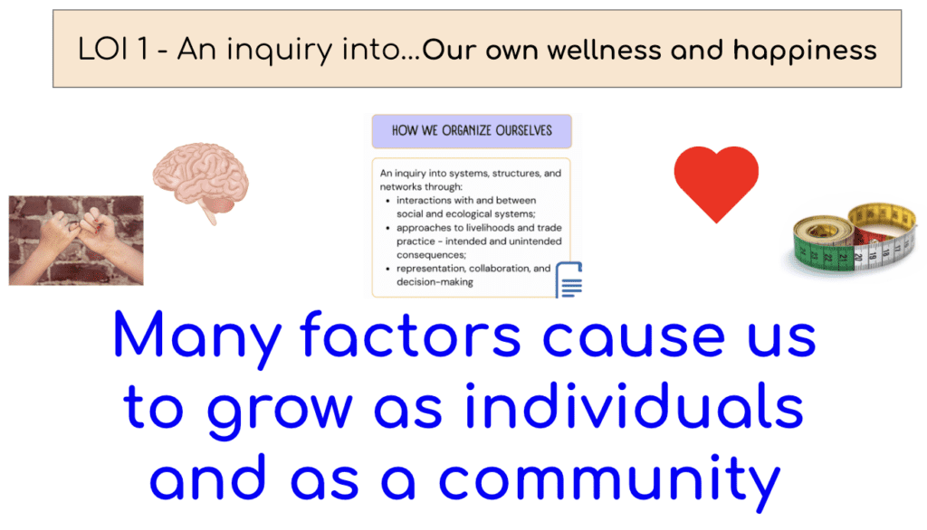 UOI – For our year long ‘How We Organise Ourselves’ unit our central idea is ‘Many factors cause us to grow as individuals and as a community.’ The following questions have been explored this week and may be fun dinner time conversations perhaps for your family. What is happiness? How do we measure happiness? How can we become happier? What does happiness feel and look like?