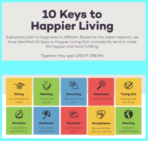 - Inquire into key 1 of Action for Happiness (below)