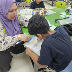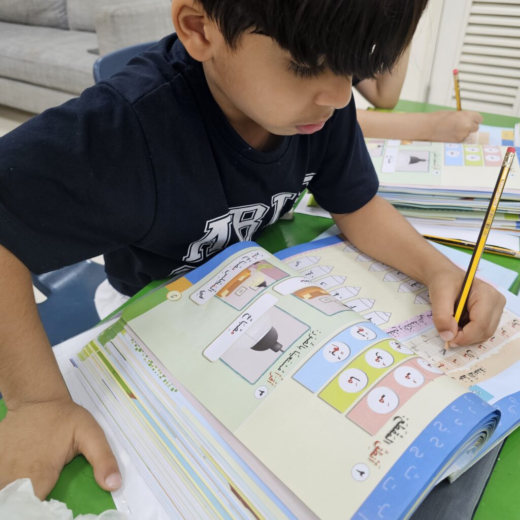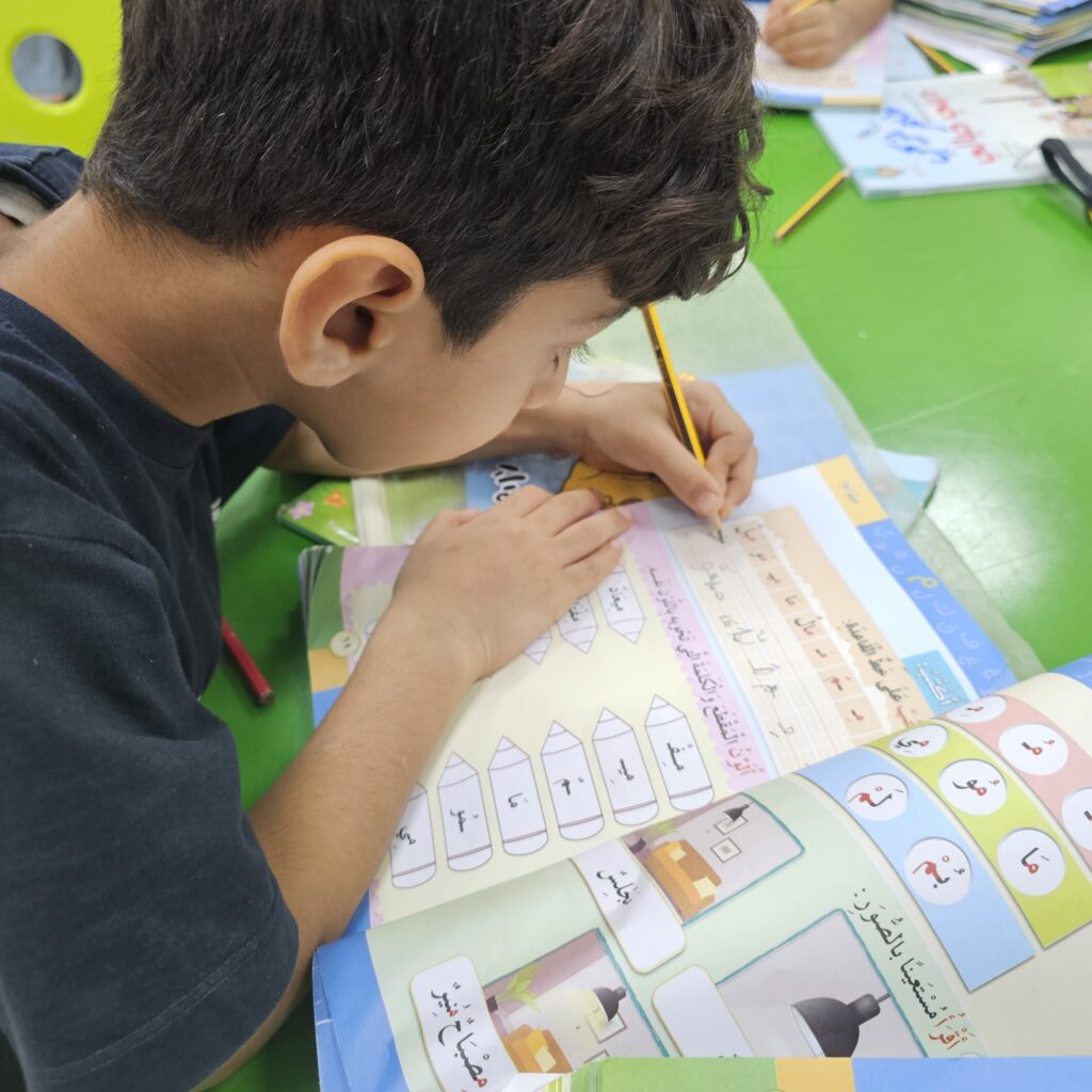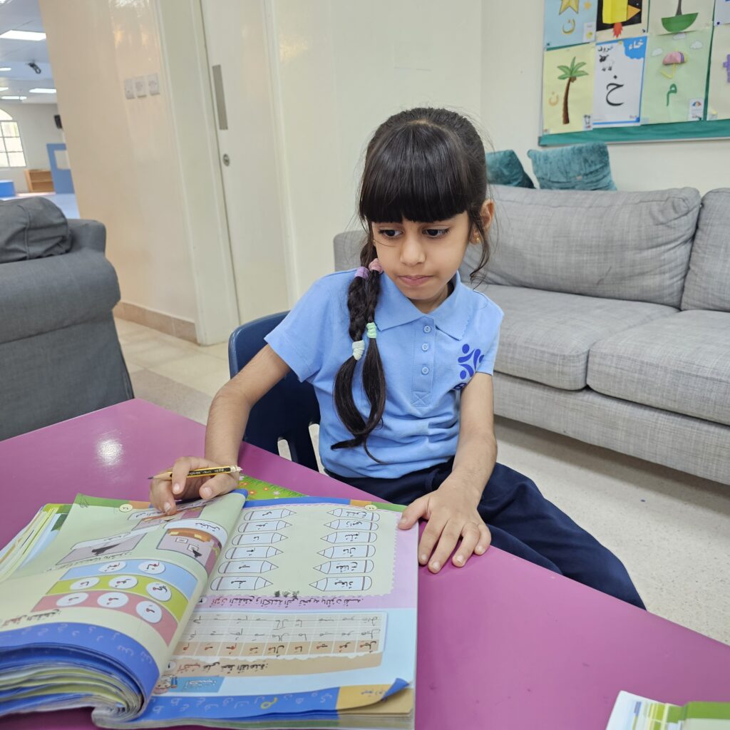 This week, we completed three letters with their short and long sounds, read a fully vowelled sentence, and wrote it as dictation to the best of our ability.