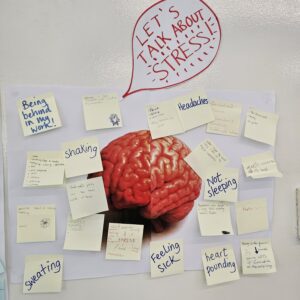 Today in our Advisory PSHE we talked about stress. What does this word mean to them? What immediately comes into their heads when they hear that word? What effect does stress have on their bodies? Some of the students reflected on things that make them feel stressed (a couple said they never feel stressed at all…lucky things!!). Next week we will do a session on managing stress and strategies that can help them to do this.