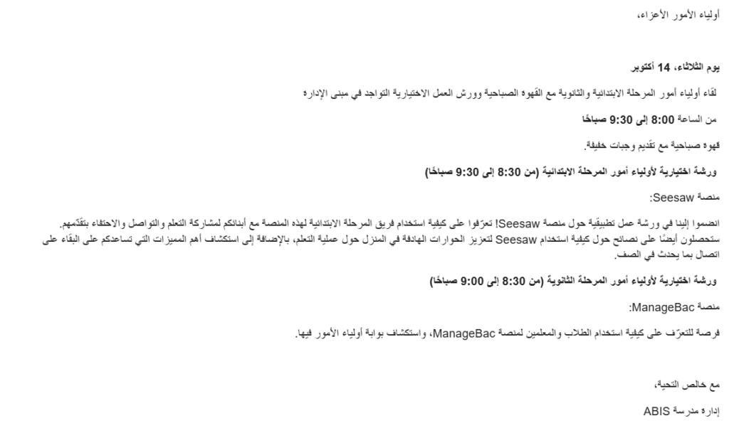 Primary and Secondary Parent-Coffee Morning & Optional Workshops