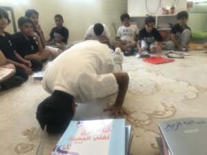 قام طلبة الصف الخامس بالتطبيق العملي لأفعال الصلاة في حصص التربية الإسلامية مع مناقشة الأخطاء الكثيرة التي تقع من قبل المصلين ، والتعرف على كيفية صفة القيام والركوع والسجود والجلوس للتشهد، مع التطبيق العملي أمام الطلبة وترك الفرصة لهم للتدريب العملي لتصحيح الأخطاء مع تعزيز الصواب من أفعالهم، وتشجيعهم على المحافظة على الصلاة بطريقتها الصحيحة مع الاستدلال بحديث الرسول صلى الله عليه وسلم ( صلوا كما رأيتموني أصلي) والرد على جميع استفساراتهم المتعلقة بأفعال الصلاة وأقوالها، ومتابعة شغفهم وتحبيبهم في الصلاة حفظهم الرحمن من كل سوء