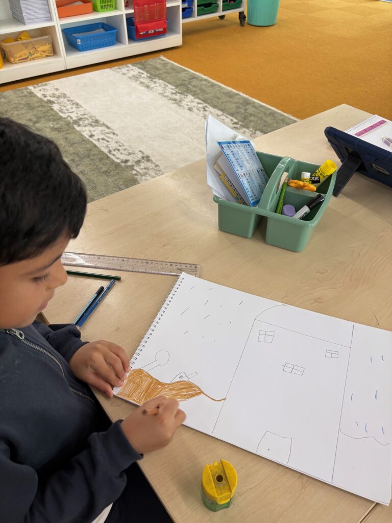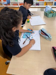 All students are so excited about our new unit on extreme weather. We are telling stories about floods especially in Oman when cyclone Shaheen occured. We are exploring Nina Jordan an American artist who enjoys painting about floods and the emotions and devastation around it.