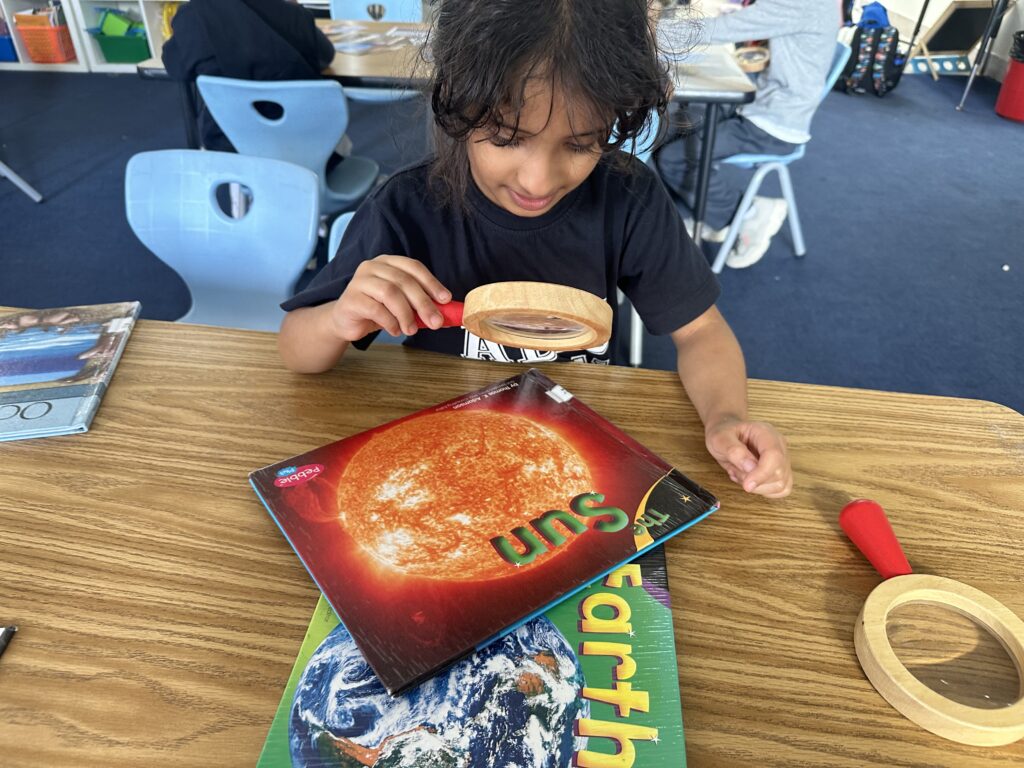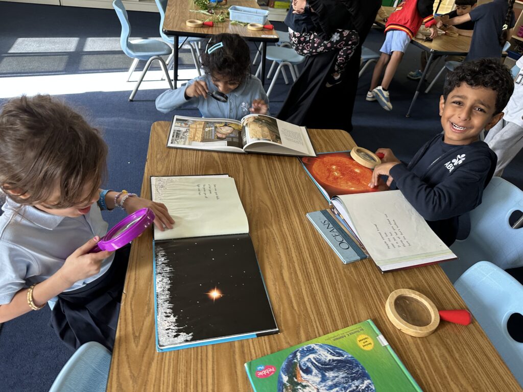 In our Unit of Inquiry, children explore sensory bins with leaves, rocks, flowers, and sand. They look closely, touch gently, and sometimes smell the items, then describe what they notice using simple words like rough, smooth, soft, hard, light, heavy, and fragrant. This activity builds their Approaches to Learning thinking skills as they sort and compare, make careful observations, and explain their ideas with reasons. As inquirers, they ask curious questions, and reflect on what they learned. Our goal is for every child to grow in confidence using clear vocabulary, to think carefully and to enjoy discovering the characteristics of natural materials in a safe and calm way that supports English language development.