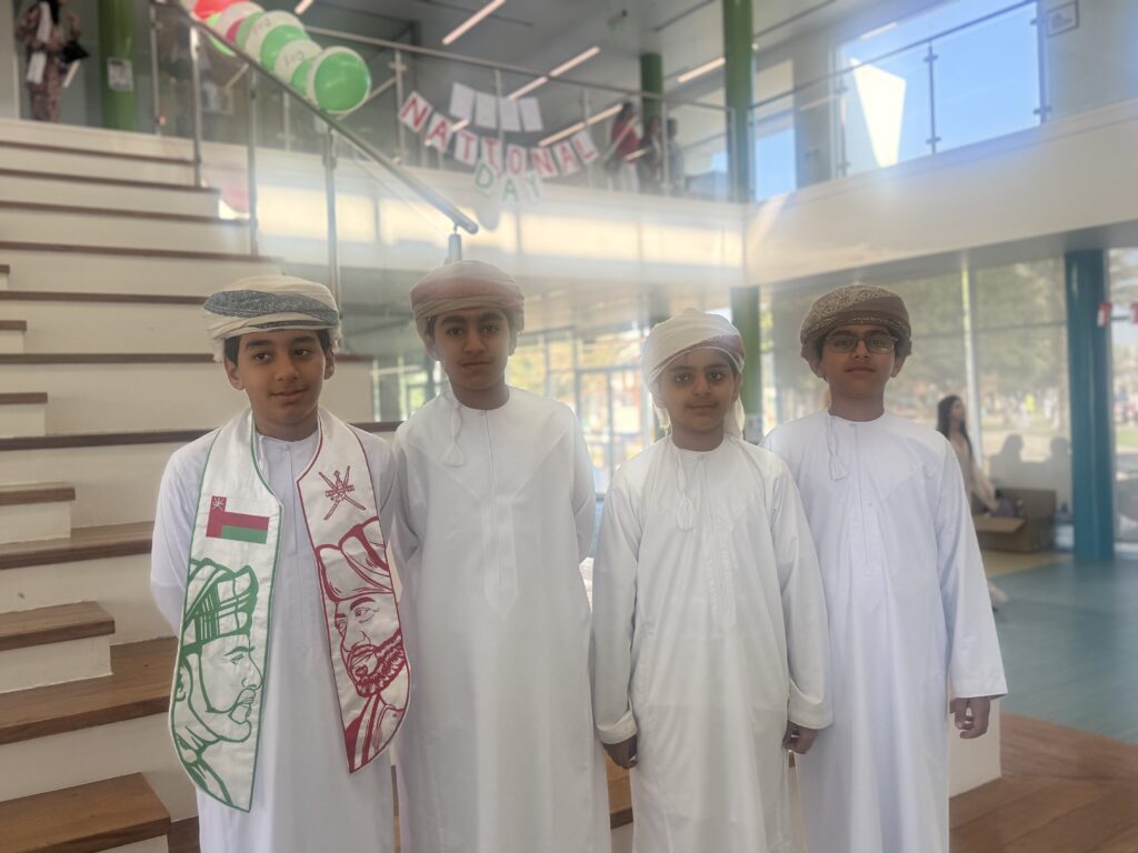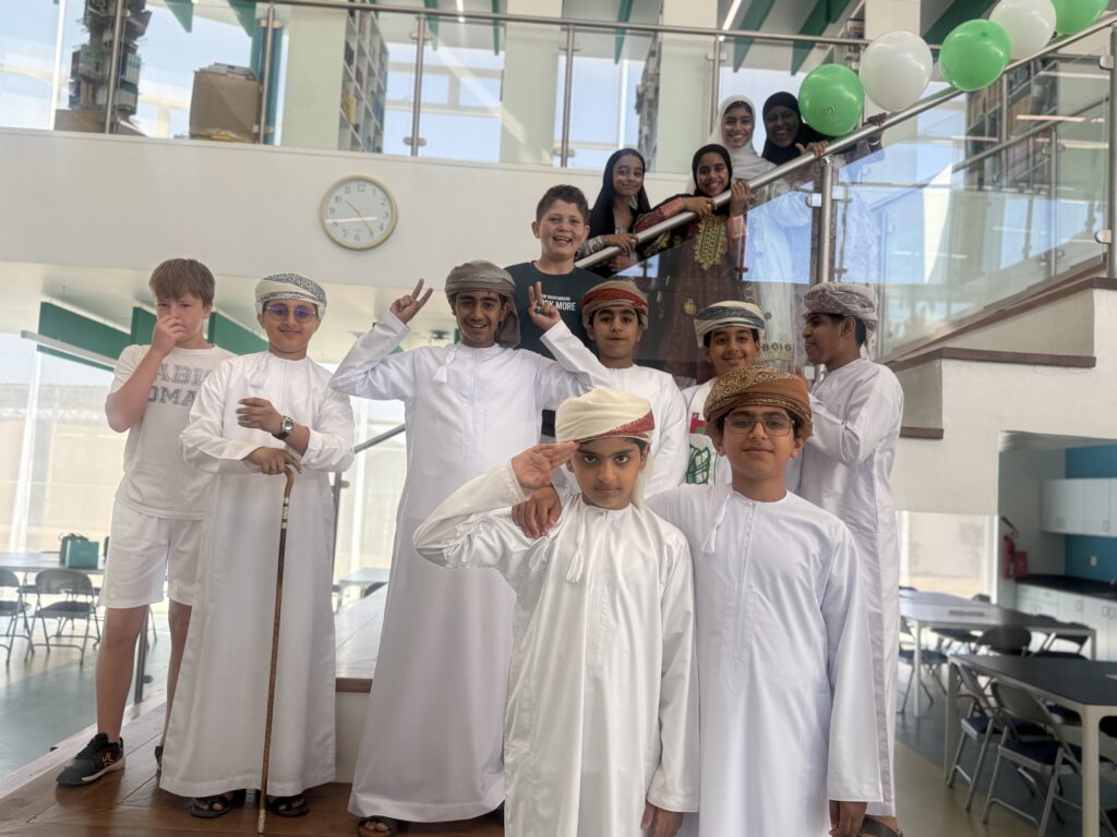 We have just ended our week with an amazing whole school Omani National Day Celebration Assembly. We were so proud to see our very own Grade 7 students: Said, Yahya, Ghazi and Sultan Yahya, perform as the flag bearers for this very special occasion. Well done boys!