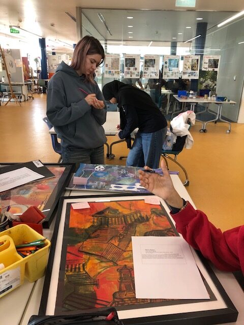 Our MYP Art Grade 10 students have just completed Criterion C of our Utopia Unit, where they finalized their artworks and reflected on their entire creative process. As part of this reflection, students engaged in Sticky Note Critiques, a simple yet powerful strategy for peer feedback. This method encourages quiet, thoughtful responses and ensures that even the most reserved voices in the classroom are heard. It also provides a time-efficient alternative to lengthy verbal critiques while still supporting meaningful dialogue about artistic growth.