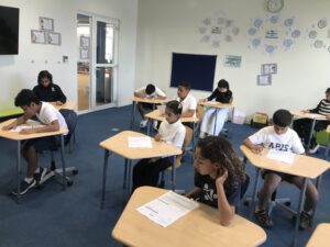 نفذ طلبة الصف الرابع الاختبار القصير الأول في مادة اللغة العربية هذا الأسبوع، من خلال الوقوف عند مهارات اللغة العربية المتنوعة كالاستماع والفهم المقروء والأنشطة اللغوية والإملائية والتعبير وقاموا باسترجاع ما تم دراسته خلال الأيام الماضية في مادة اللغة العربية موضحين المهارات التي اكتسبوها خلال الفترة الماضية و التدريبات التي كانوا ينفذونها في هذا المجال،