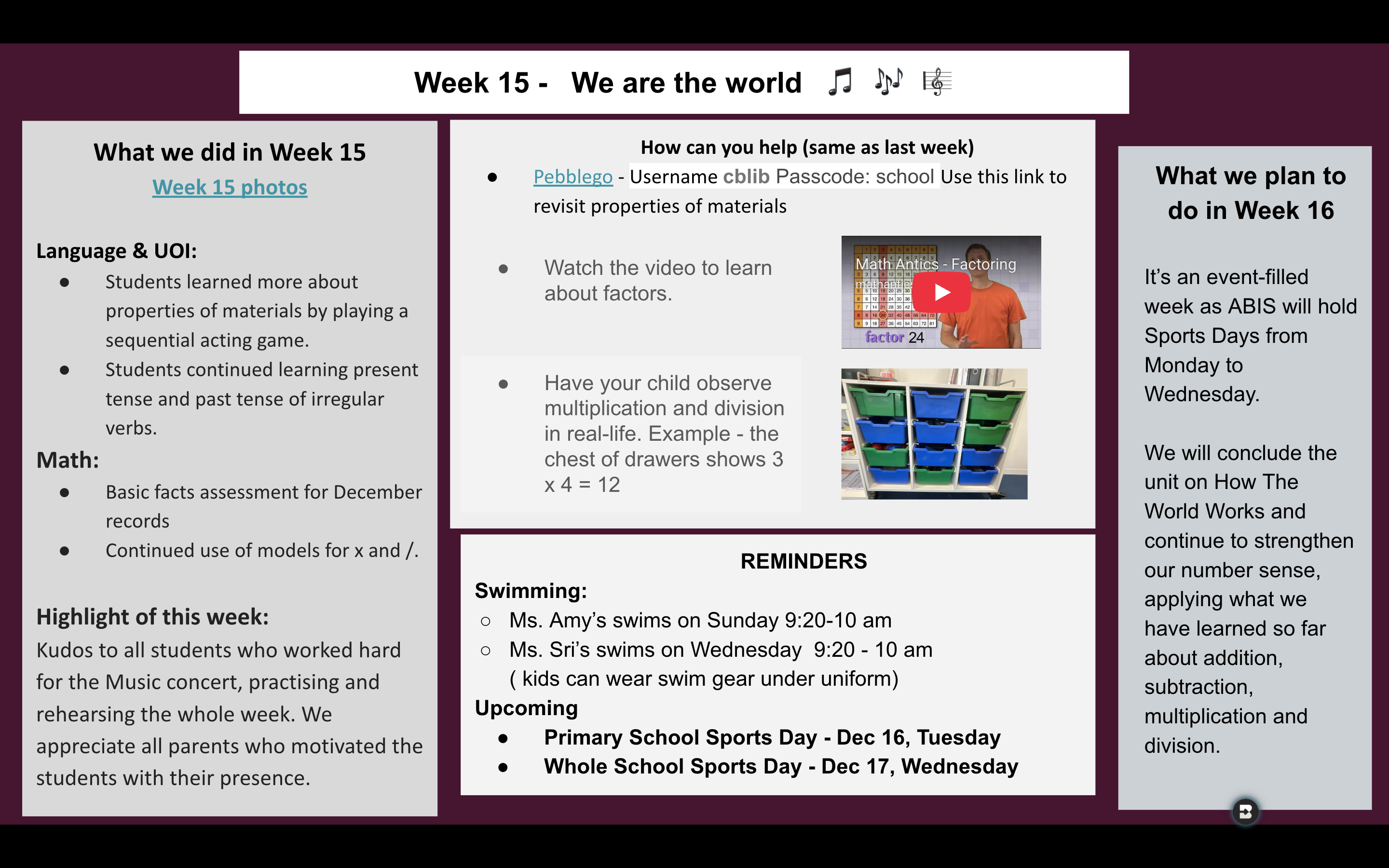 Please click the link to the slides to access this week’s updates. Have a lovely weekend.