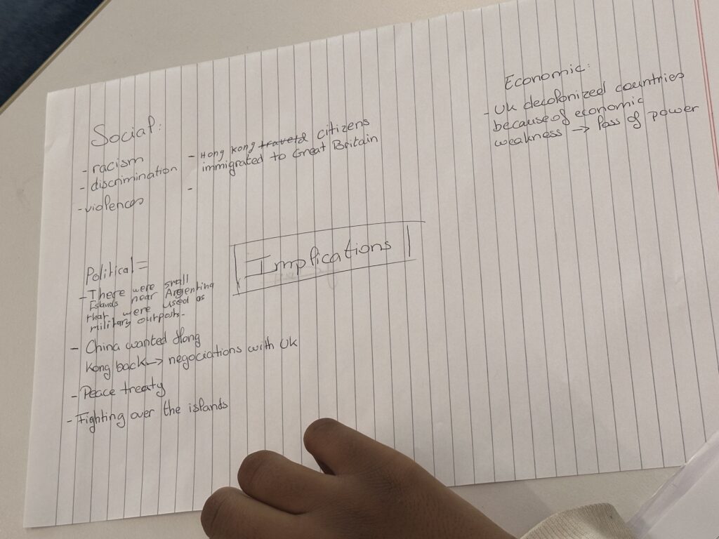 It may be the last day of school but Grade 8s are still dedicated to their learning and worked to finish their critical writing about the decline of the British Empire and the political implications thereof.