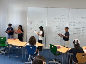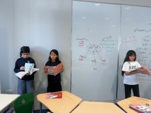 قام طلبة الصف الرابع بتمثيل درس مخّ الوعل الذي تم دراسته خلال هذا الأسبوع، وتمثلوا أدوار الأسد والثعلب والوعل في صراع واضح ليظهر من خلال الأحداث مصير الطمع الذي يتصف به الإنسان وكيف ممكن أن تكون نهاية من لا يحكم عقله في المواقف التي تمرّ به ولا يستفد من الدروس التي مرت عليه، وخرجنا منه بالدروس المستفادة التالية: عدم الطمع والتحلي بالقناعة واستخدام العقل في المواقف لا القوة فقطوكذلك عدم الانسياق وراء الآخرين.