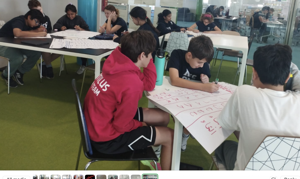 AAL Grade 6 students by Salwa ARIAN | Jan 22, 2026 | Arabic, Grade 6 | 0 comments Grade 6 AAL students demonstrated enthusiasm, knowledge, and enjoyment through created various posters establishing some basic of Arabic and reflecting what they had learned during the previous period of the school year.