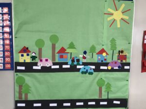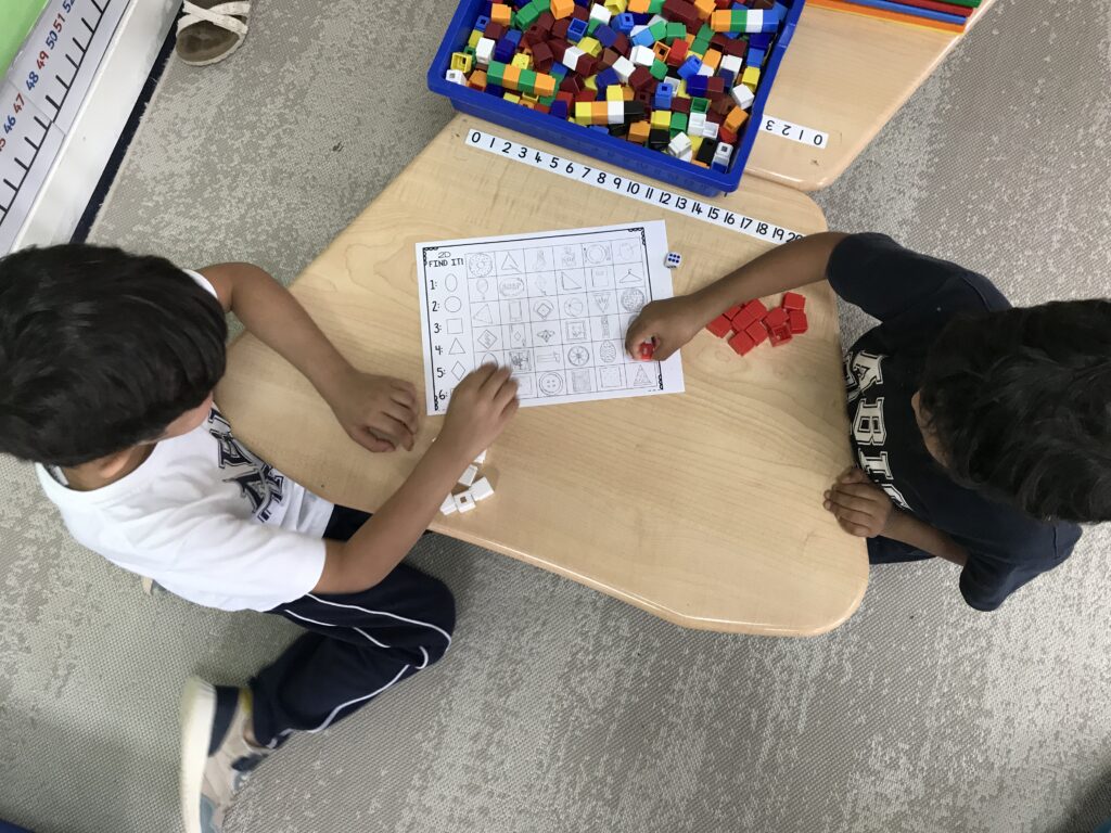 In addition, we have been learning about 2D and 3D shapes. One student had a great idea to create a town using 2D shapes, and the class was very excited to begin building it. We will continue working on this project over the coming weeks.