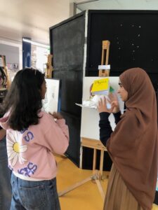 During the session, we used the Praise–Polish method. TOK students provided feedback on sticky notes, offering Praiseby highlighting successful aspects of the artwork and Polish by suggesting one constructive idea for improvement. This created a supportive environment for sharing ideas and encouraging artistic growth.